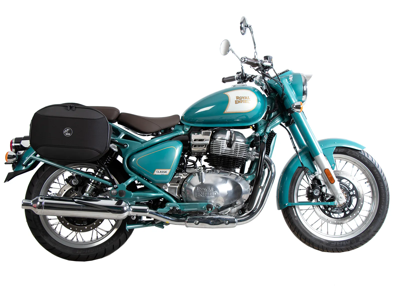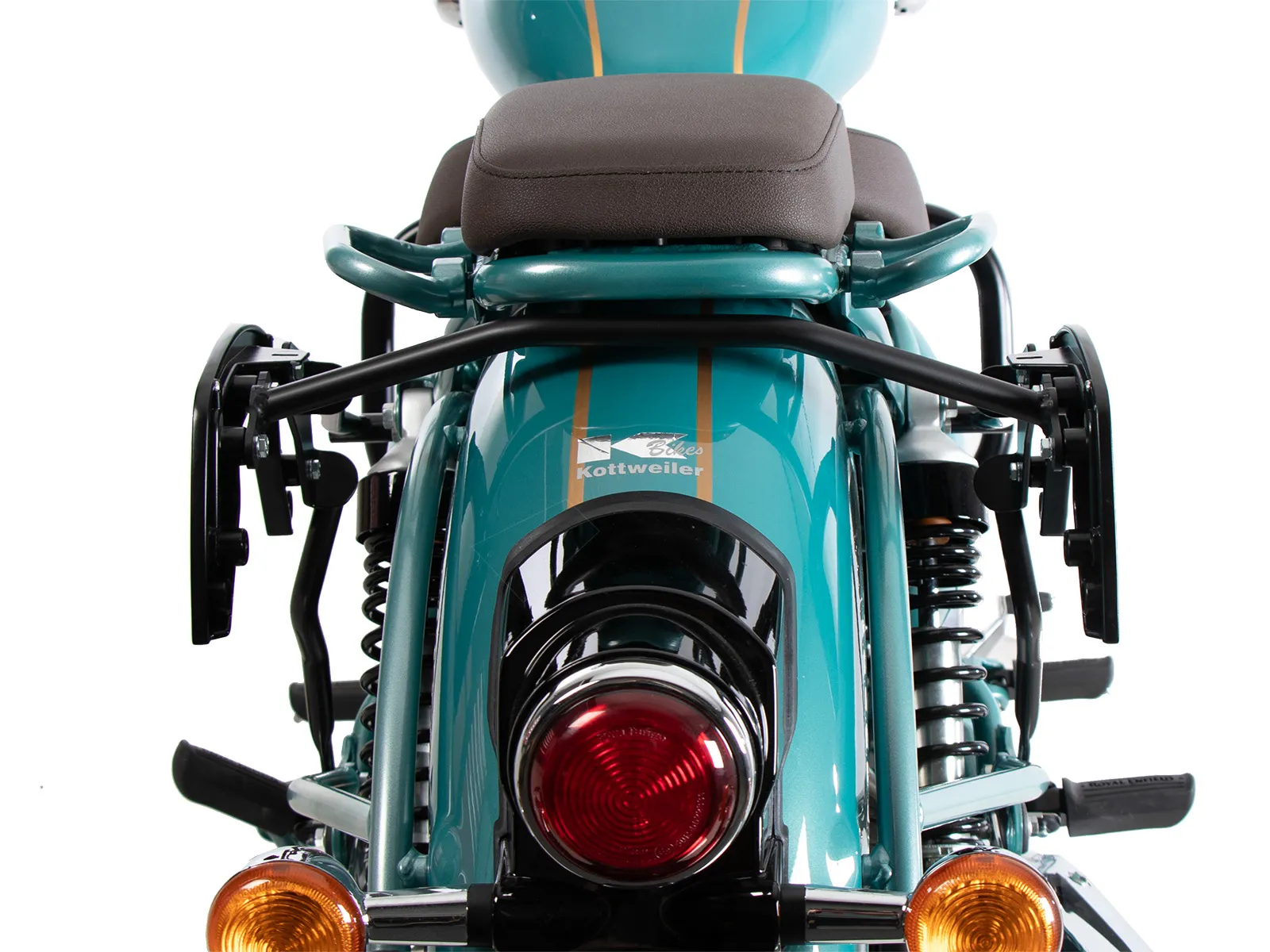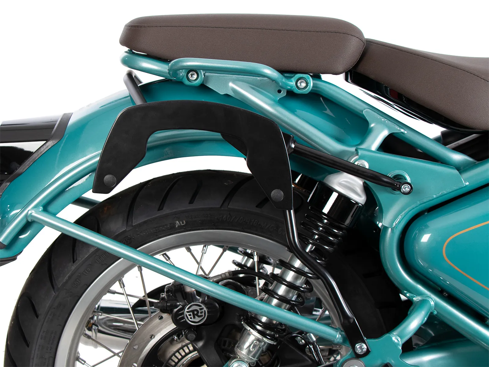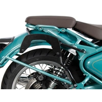 The C-Bow bag holder is made to take a variety of Hepco&Becker bags, depending on the motorcylce model. Softbags for sporty, dynamic motorcycles and saddlebags for choppers and cruisers can be attached to the motorcycle with the C-Bow holder. Its elegant, unobtrusive design fits perfectly into the vehicles overall lines. Naturally, it keeps saddlebags safely away from the hot exhaust muffler. Modern C-Bow technology allows the right bags to be attached simply and easily to the C-Bow with a single click, firmly locking them to deter theft. The bags are attached securely to the motorcycle and stay in position even when loaded. On many models, the turn signals stay in their original position. Please check manual for more info.
