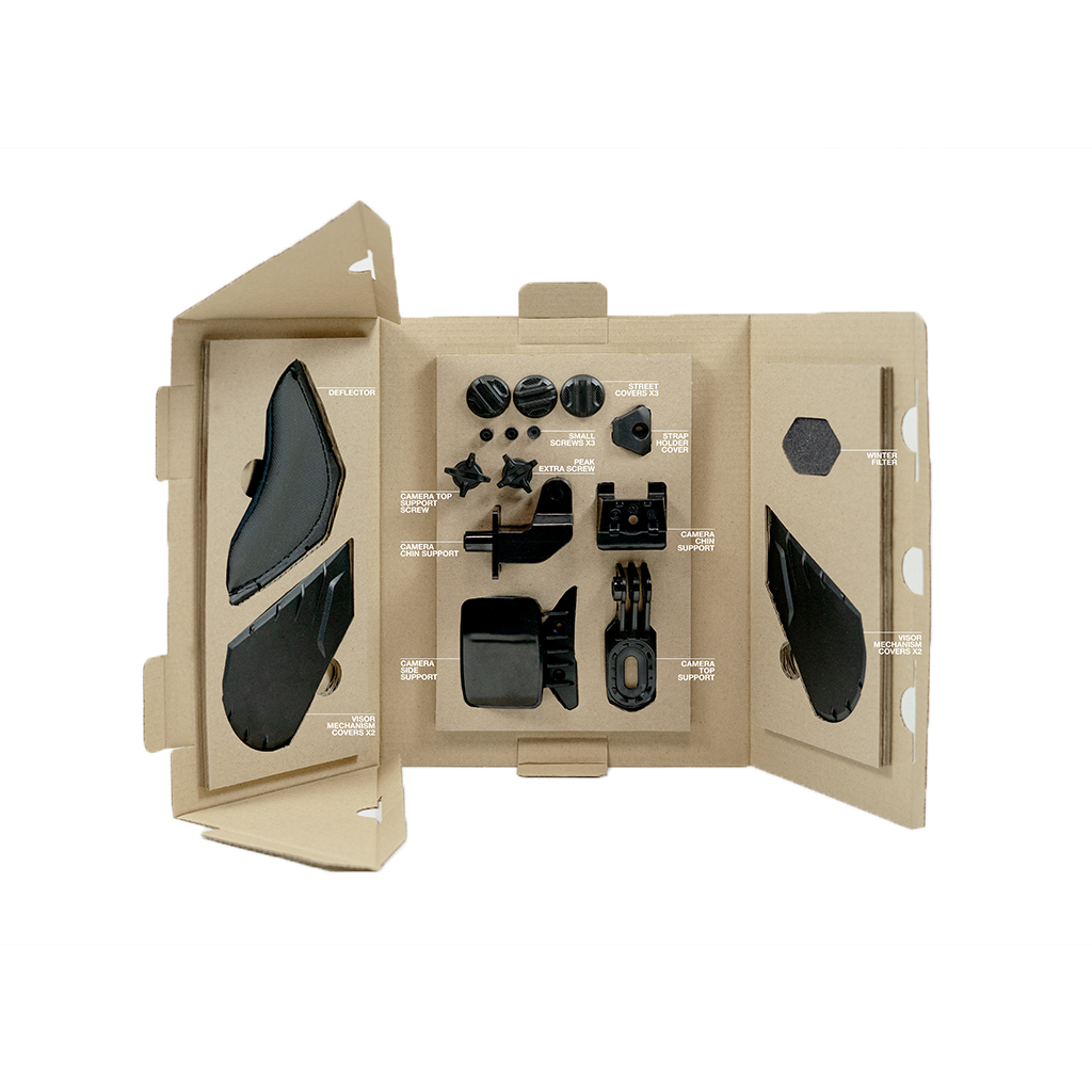 Designed to keep your action camera securely and firmly in place during adventure riding, the new included POV Kit includes a top camera mount, that can be used with and without the peak; a removable side mount and a 4-reversible position chin mount, to capture all the action up close!