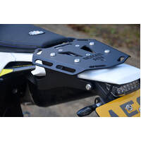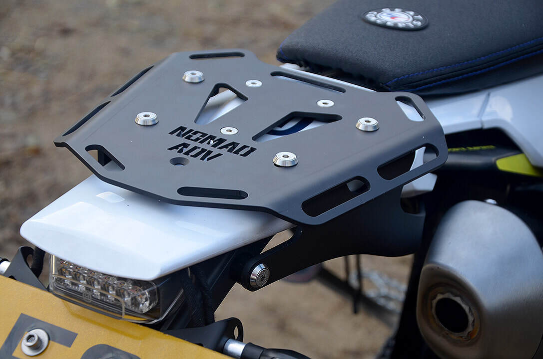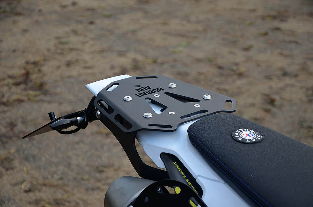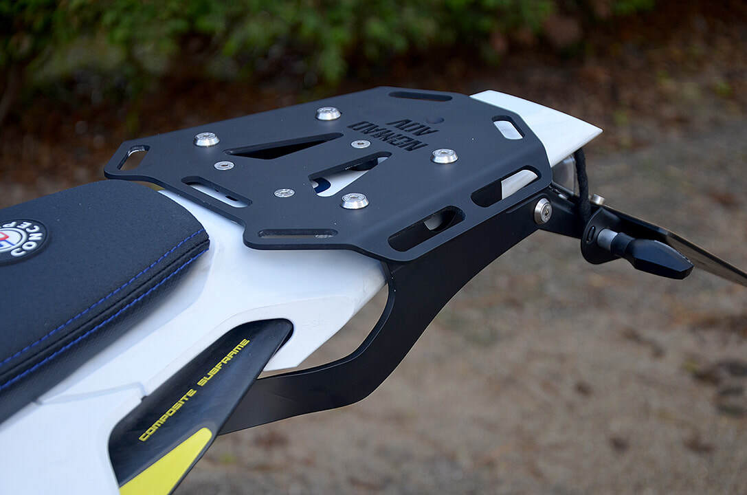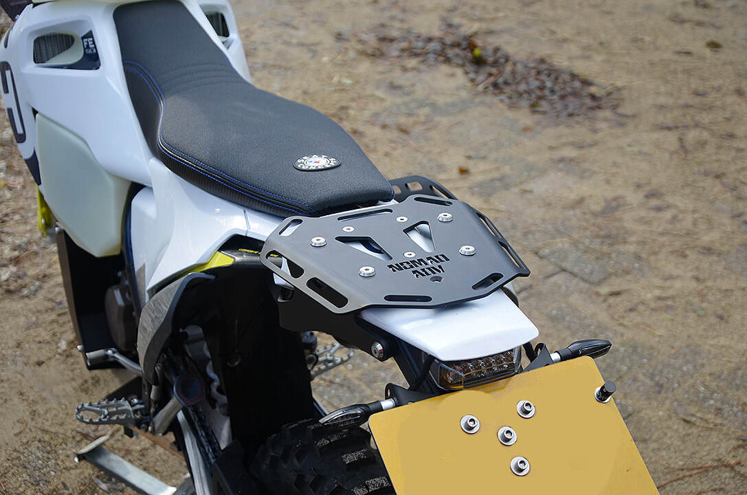 We all know that Enduros are a great basis for a true travel bike. You'd like to take some luggage with you though. That's why Nomad ADV have developed a proper rear rack. As the FE rear end is a Carbon Composite construction without obvious mounting points for a rack, it took quite a bit of engineering to make a proper rear rack. To keep it light, it's an all aluminium construction in a combination of aircraft- and marine grade aluminium depending on application. The end result is a rear rack which not only works well but in fact also stiffens the rear end. The air filter remains accessible with the rack fitted. Comes complete with all stainless fasteners and hardware.