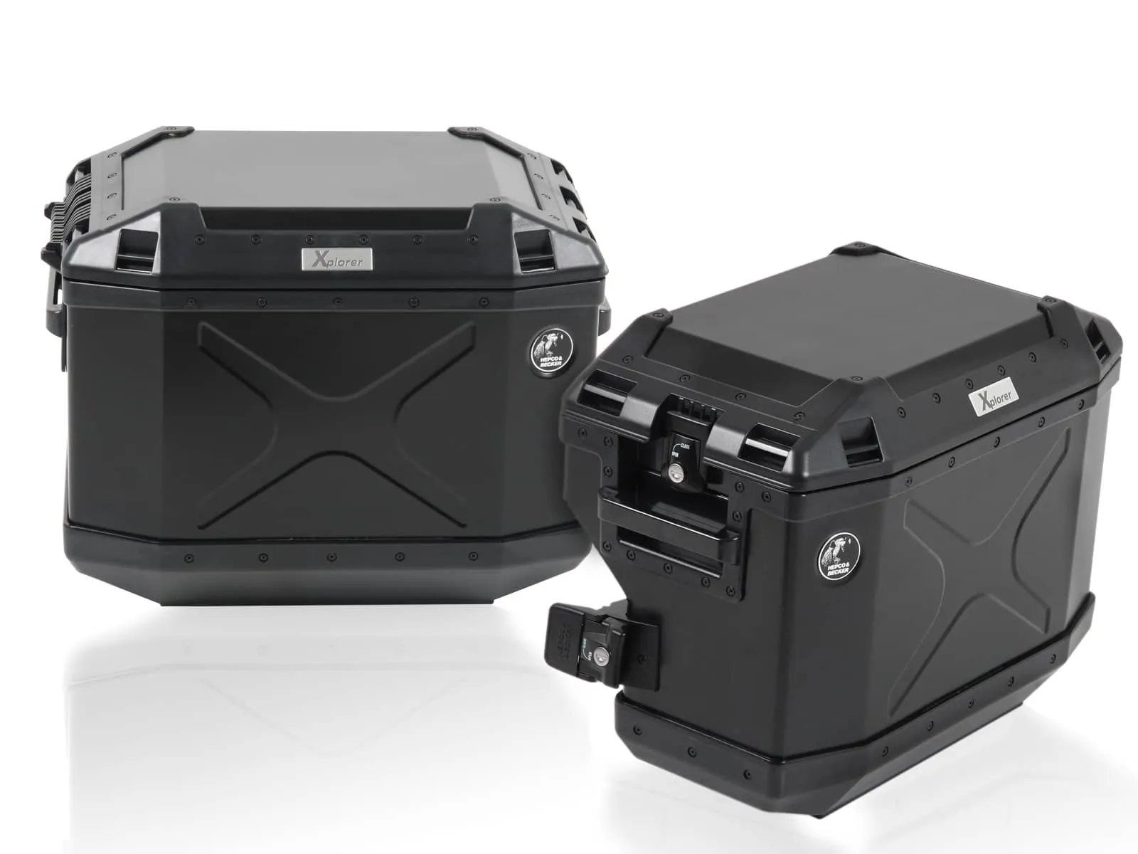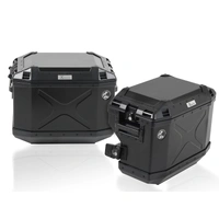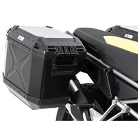 Set of a model-specific, stainless steel sidecarrier on both sides in combination with a Xporer 40 litre and a recessed Xplorer 37 litre case including key, cylinder and the required lock adapters to attach the cases to the carrier
