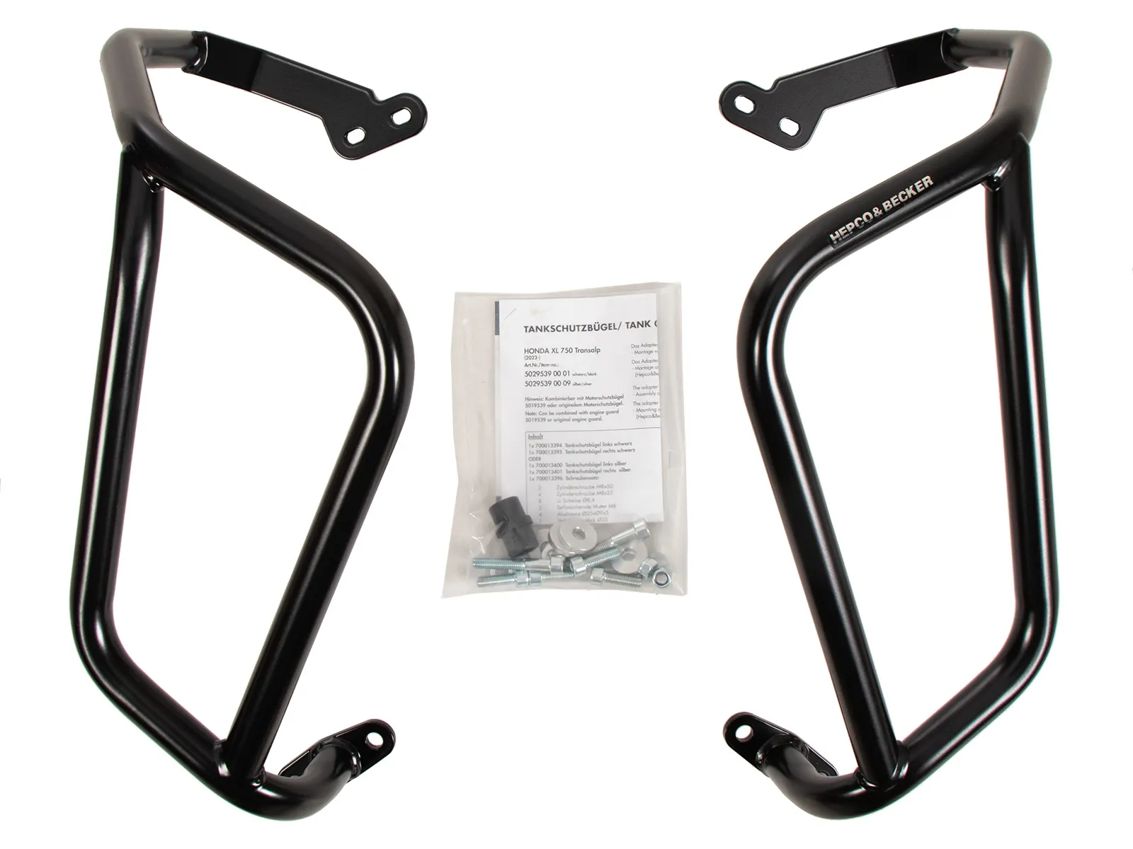 | Model-specific information: | Can be combined with engine guard 5019539/5019556 or original engine guard. The adapter set 42139539/42139556 is required for: Mounting of 5029539/5029556 with/or 5019539/5019556., The adapter set 42139539/42139556 is not required for: Mounting on an already installed engine guard (Hepco&Becker or original)., Installation of H&B engine gurad: 1x 42139539/42139556 (adapter), installation of H&B tank guard: 1x 42139539/42139556 (adapter), H&B engine and tank guard: 1x 42139539/42139556 (adapter), Honda protection bar and H&B protection bar: no adapter required. |
