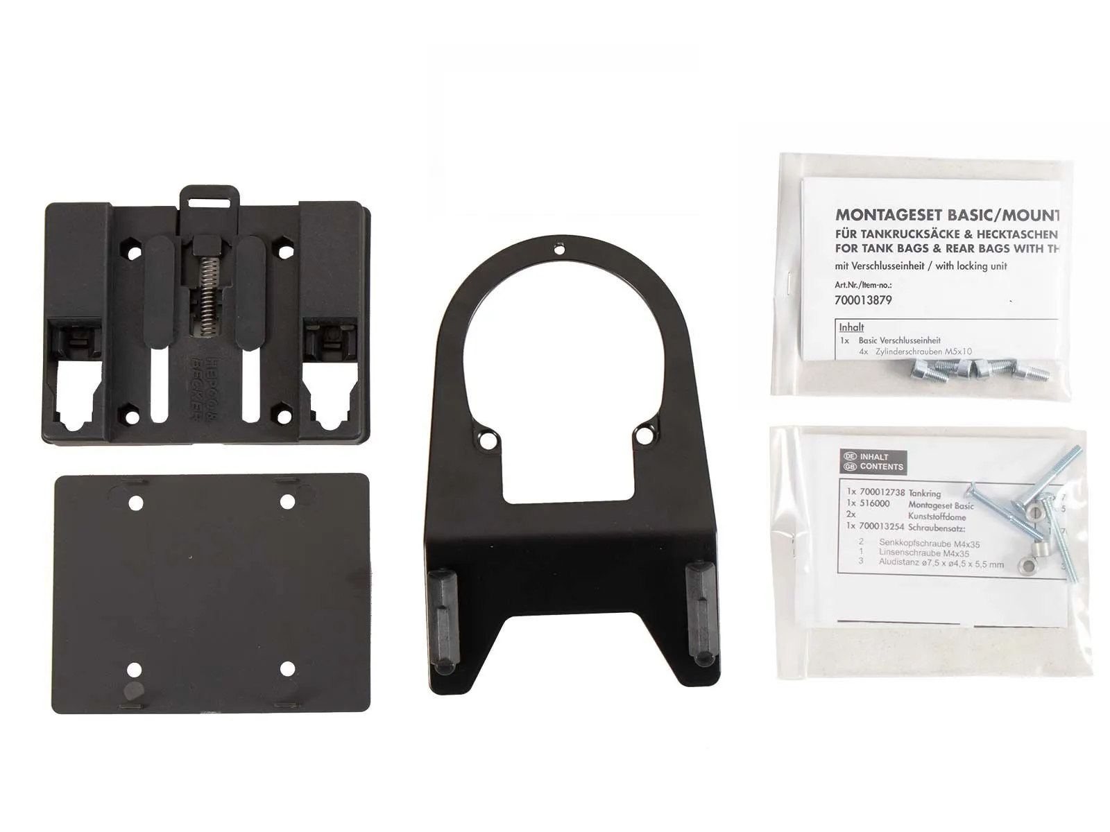 The scope of delivery includes a BASIC tank ring, as well as the fastener for tankbags, which can be individually screwed to the tank bag, depending on the shape of the tank and the angle of the handlebars.