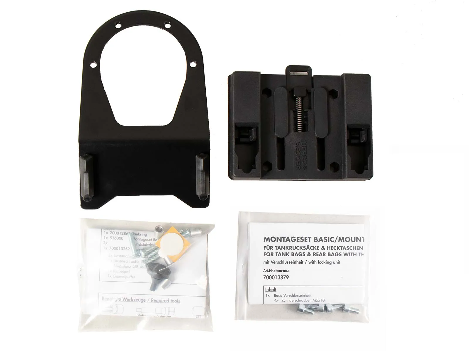 The scope of delivery includes a BASIC tank ring, as well as the fastener for tankbags, which can be individually screwed to the tank bag, depending on the shape of the tank and the angle of the handlebars.